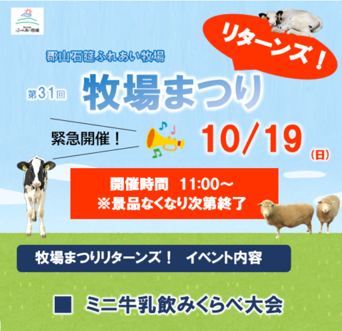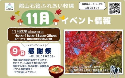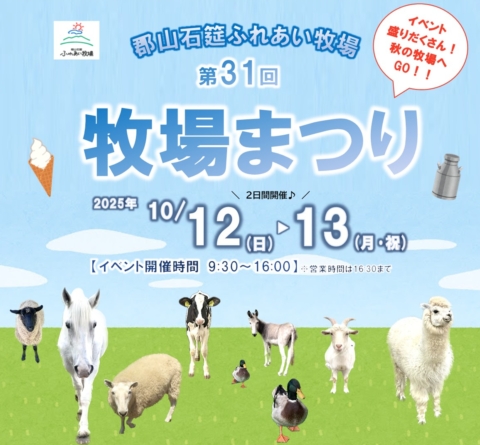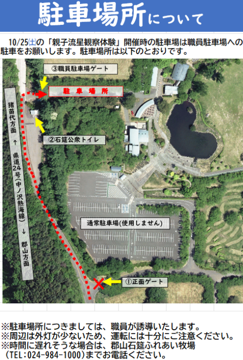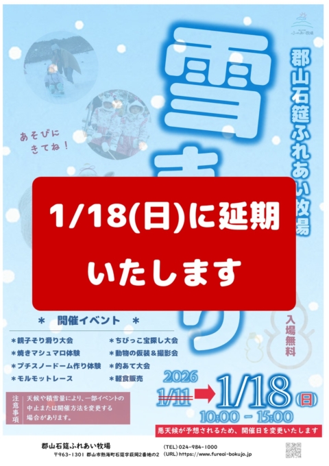 郡山石筵(いしむしろ)ふれあい牧場 〒963-1301 福島県郡山市熱海町石筵字萩岡2-2 TEL 024-984-1000 FAX 024-984-1002