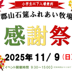 - 2025/10/31 郡山石筵ふれあい牧場 感謝祭開催のお知らせ 今年1年の”ありがとう”をお届けします! 郡山石筵ふれあい牧場は11月30日(日)をもちまして今シーズン...