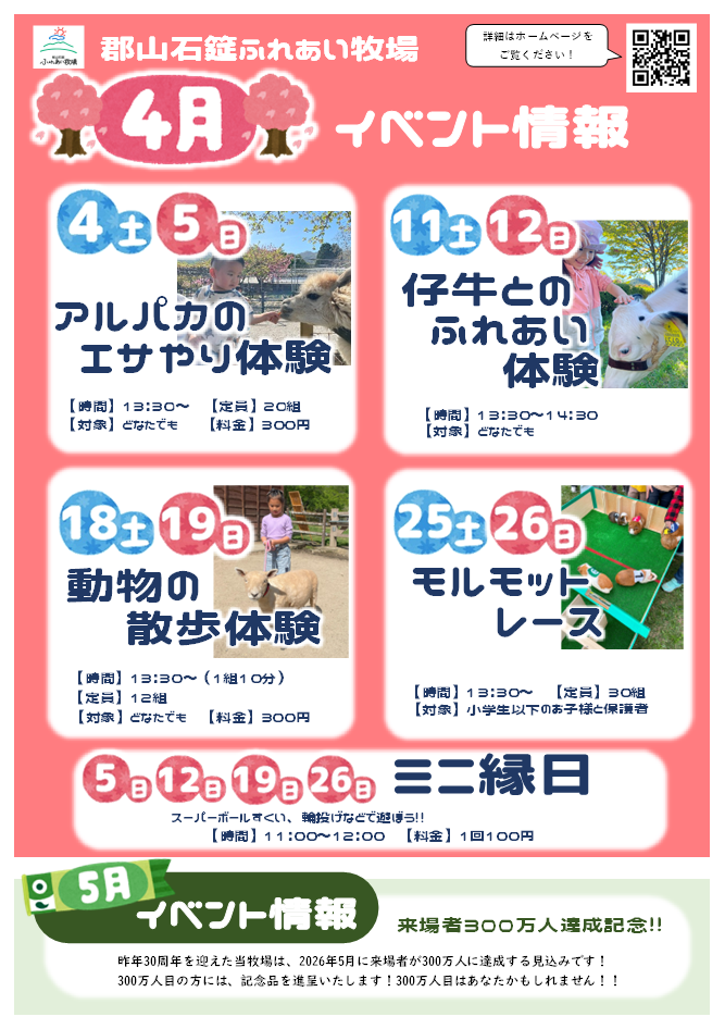 なお、毎週末開催の定例イベント以外は、開催内容決定次第カレンダーに掲載いたします。