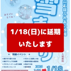 - 2026/01/10 【雪まつり延期のお知らせ】 ⛄雪まつり⛄は1/18(日)に延期いたします! 1/11(日)の開催予定の「雪まつり」は、翌1/12(月・祝)を含め悪天候が予想...