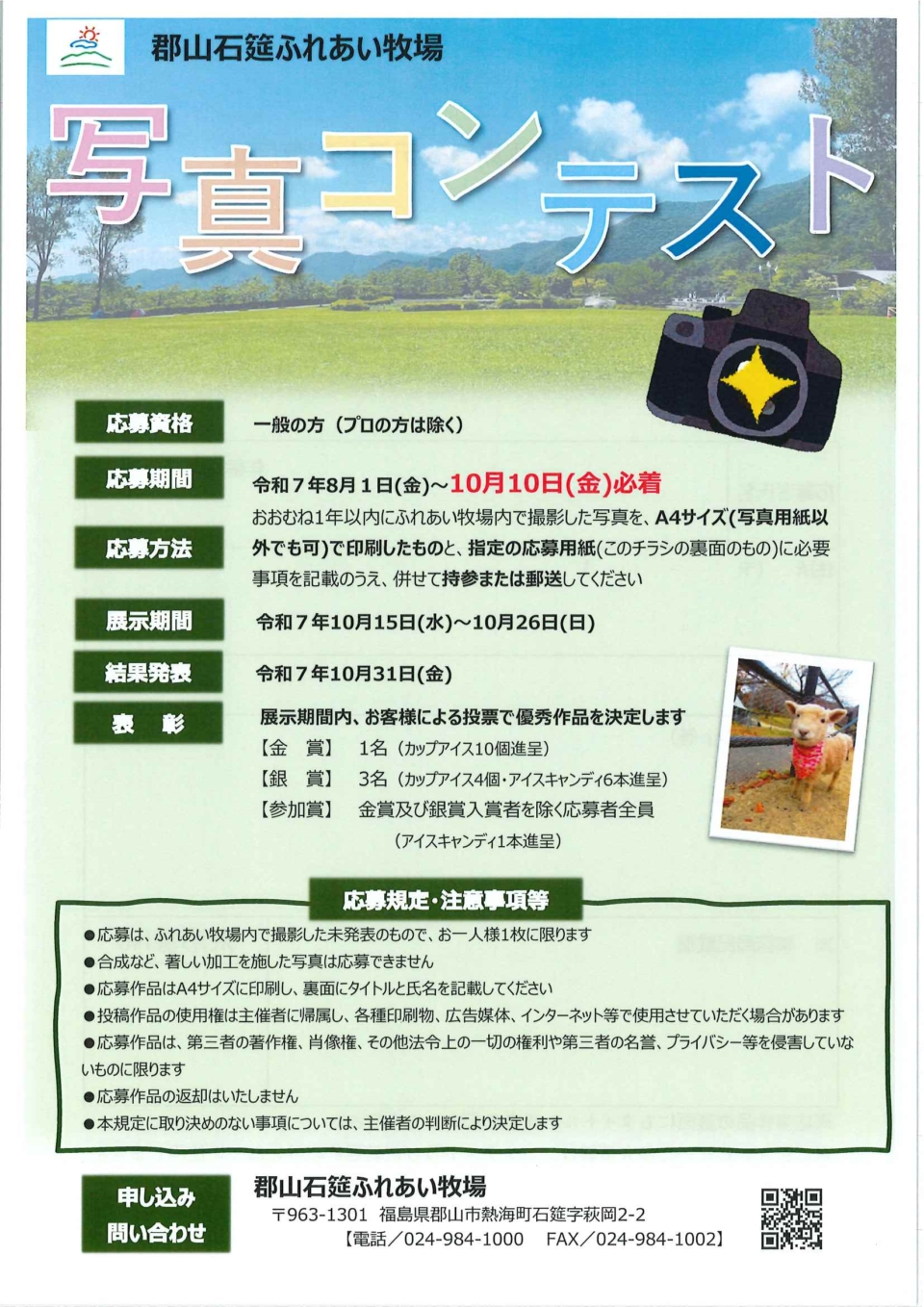 郡山石筵(いしむしろ)ふれあい牧場 〒963-1301 福島県郡山市熱海町石筵字萩岡2-2 TEL 024-984-1000 FAX 024-984-1002