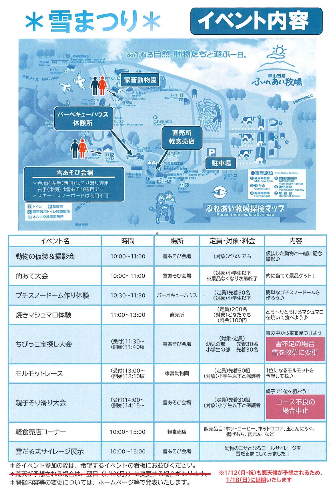 ◆⛄雪まつり⛄は1/18(日)に延期いたします!