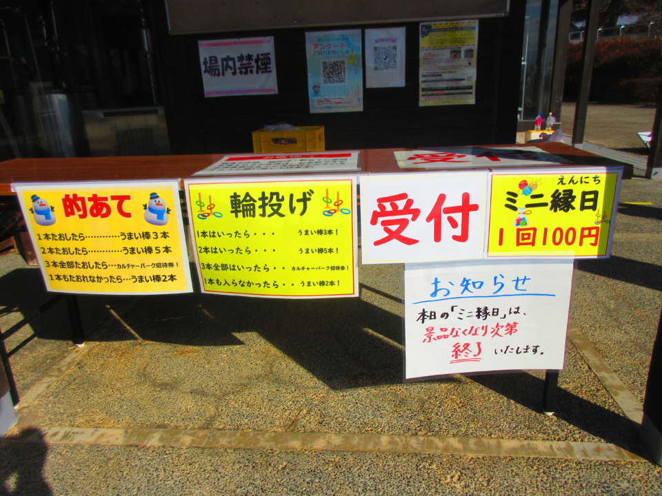 料金は1回100円!お菓子やカルチャーパーク招待券が当たります。