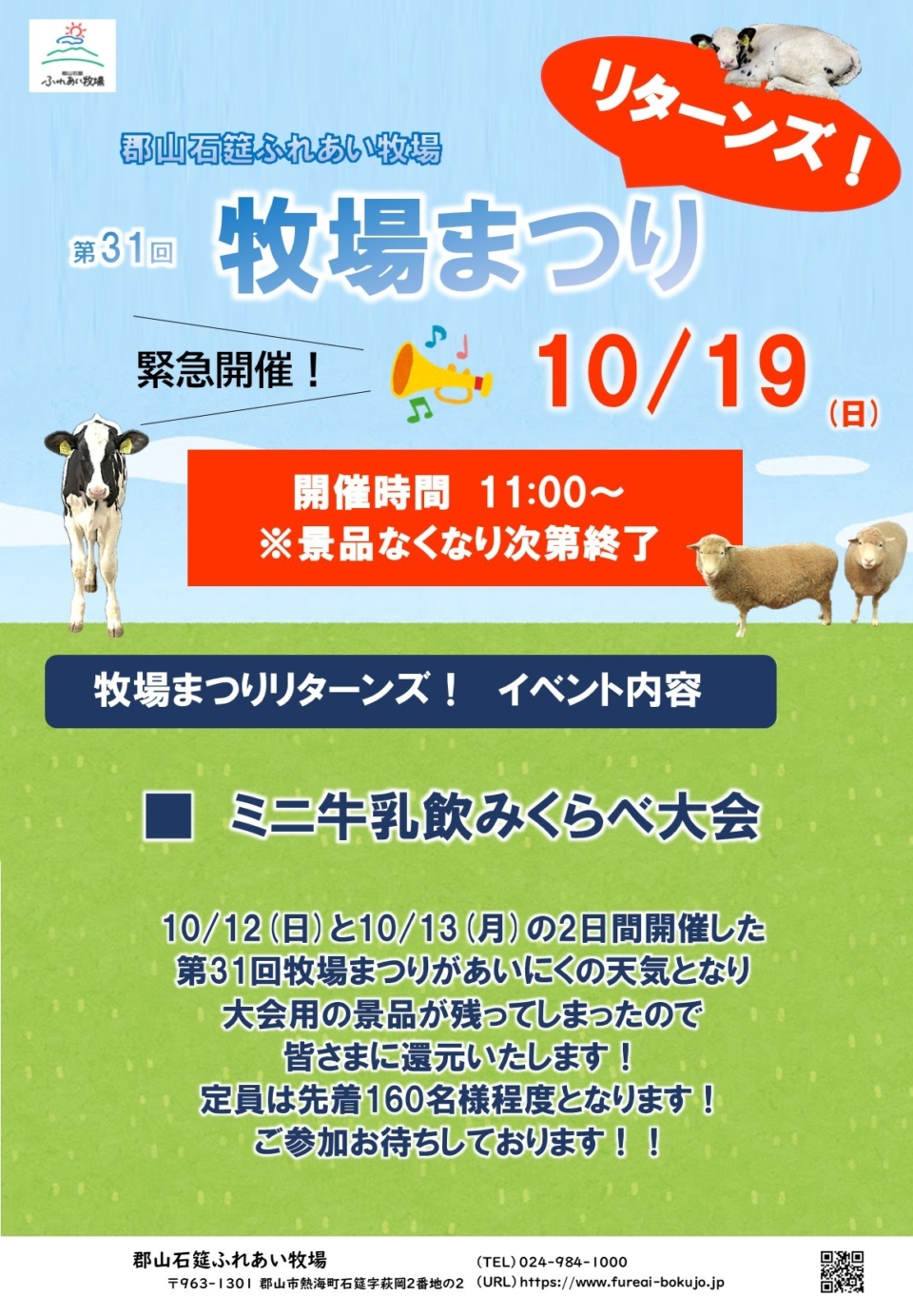 【10/19㈰緊急開催!】牧場まつりリターンズ!