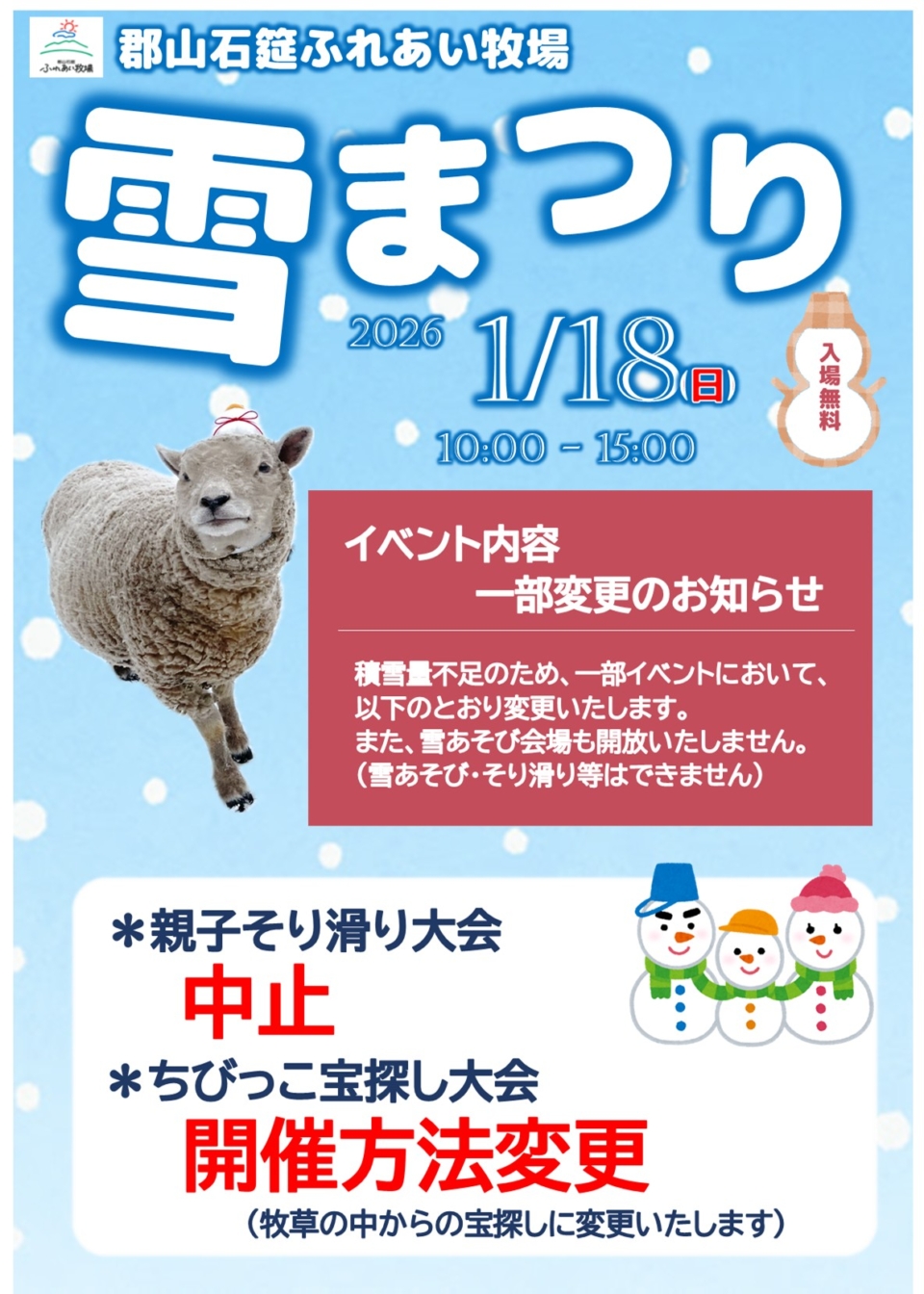 ⛄積雪量不足のため、一部イベントを変更いたします⛄